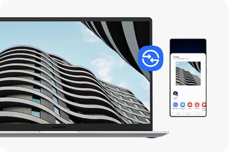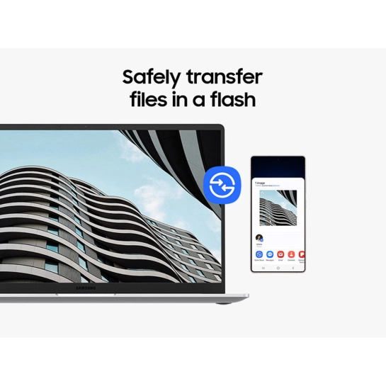 За допомогою Quick Share обмін файлами з Galaxy Book5 став простішим, ніж будь-коли. Виберіть файл, фотографію або відео, якими хочете поділитися, а потім безпечно перенесіть їх на інший пристрій Galaxy, Android або iOS.