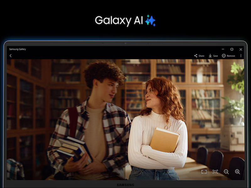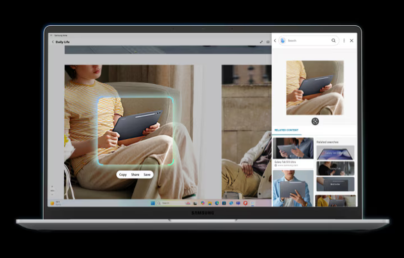 Galaxy Book5 підтримує інтелектуальні функції Galaxy AI, що підвищують вашу щоденну продуктивність і креативність. Використовуйте функції Galaxy AI, AI Select, щоб миттєво отримувати результати пошуку за текстом, зображеннями та QR-кодами. За допомогою Photo Remaster ви можете легко поліпшити якість і відретушувати фотографії з низькою роздільною здатністю, зробивши їх більш чіткими і яскравими.