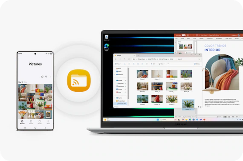 Керуйте своїм телефоном або планшетом Galaxy за допомогою клавіатури та трекпада Galaxy Book5. Легко набирайте повідомлення, електронні листи та навіть переносьте файли між пристроями.