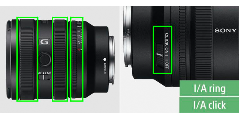Завдяки кільцевим регуляторам фокусування, збільшення та діафрагми цей об'єктив забезпечує інтуїтивно зрозуміле управління та творчий контроль під час фото- та відеозйомки. Залежно від умов зйомки можна увімкнути або вимкнути фіксацію діафрагми.