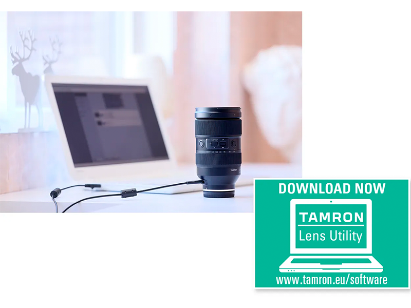 Нове програмне забезпечення TAMRON Lens Utility було спеціально розроблене компанією Tamron для налаштування власних сумісних об'єктивів. Утиліту TAMRON Lens Utility можна керувати за допомогою комп'ютера, підключивши об'єктив до порту Connector Port за допомогою додаткового кабелю TAMRON Connection Cable. Користувачі можуть настроювати функції та оновлювати прошивку через об'єктив. Персональне налаштування забезпечує гнучкі можливості зйомки відповідно до умов зйомки, наприклад, під час зйомки або відеозйомки. За допомогою персональної конфігурації об'єктив можна оптимально адаптувати до відповідних умов зйомки, наприклад, під час зйомки або відеозйомки.