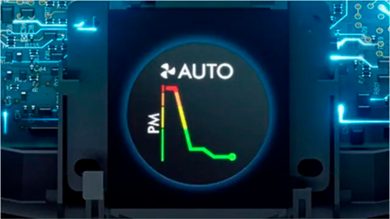 Вбудовані датчики постійно аналізують параметри якості повітря, а наш унікальний алгоритм перевіряє дані щосекунди. Прилад діагностує забруднення на молекулярному рівні, відображаючи результати в реальному часі на РК-екрані.