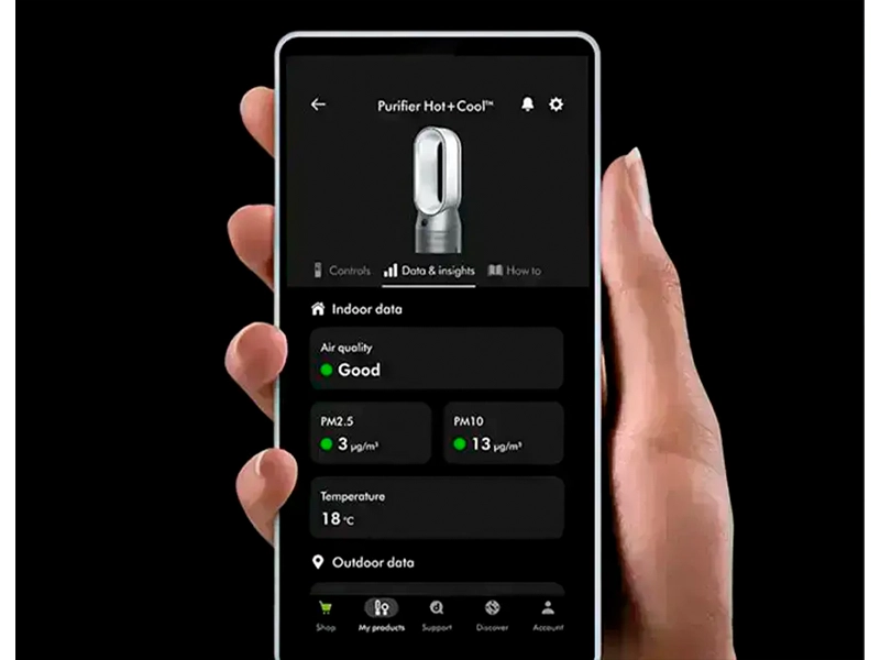 За допомогою програми MyDyson ви можете відстежувати якість повітря у своєму будинку, задавати розклад роботи та керувати пристроєм з будь-якої точки. Крім того, підтримується голосове керування через сумісні сервіси.