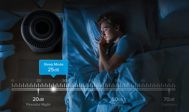 Забезпечте комфортне середовище з очищувачем повітря Levoit, який пропонує режим сну. Він зменшує яскравість індикаторів дисплея та забезпечує низький рівень шуму, що дозволяє вам насолоджуватись спокійним відпочинком.