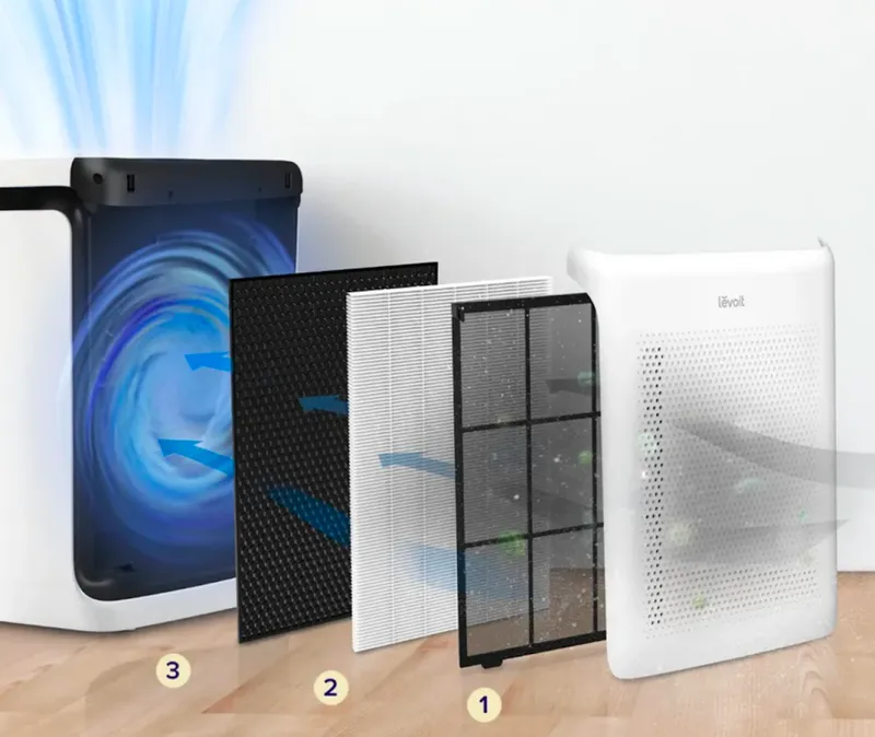 Пристрій повністю очищує повітря два рази на годину в приміщенні площею 88 м² з високим рейтингом CADR 416 м³ / год. Ще ефективнішим цей процес робить триступенева система: запобіжний фільтр затримує грубі частинки, пил і шерсть, НЕРА-фільтр позбавляє вас від 99,97% пилку, пилу, цвілі та інших частинок до 0,3 мкм, фільтр з активованим вугіллям нейтралізує неприємні аромати, включно з кухонними, від лотка тварин і димом. Промийте запобіжний фільтр під проточною водою, щоб продовжити термін служби інших фільтрів.