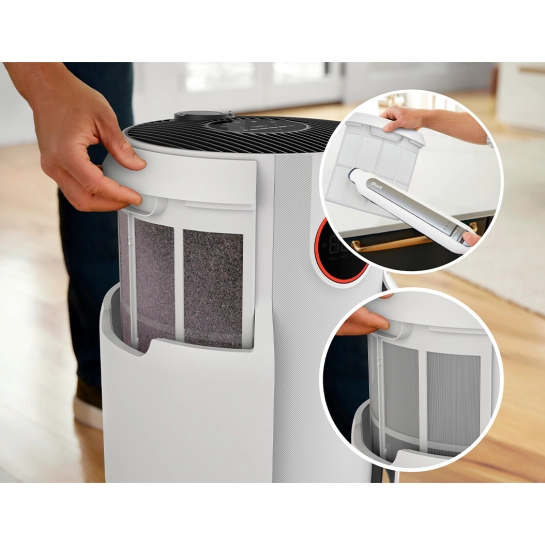 Очисник повітря Shark NeverChange5 забезпечує якісне очищення у чотири етапи та видаляє до 99,97% забруднень. Перша стадія затримує великі частинки пилу та вовну, друга – усуває дрібніші забруднення, третя нейтралізує алергени та запахи, а фінальний HEPA-фільтр затримує найдрібніші частинки пилу та алергенів. Багаторівнева система фільтрації дарує свіже, чисте повітря у кожному куточку будинку – без пилу, алергенів та сторонніх запахів.