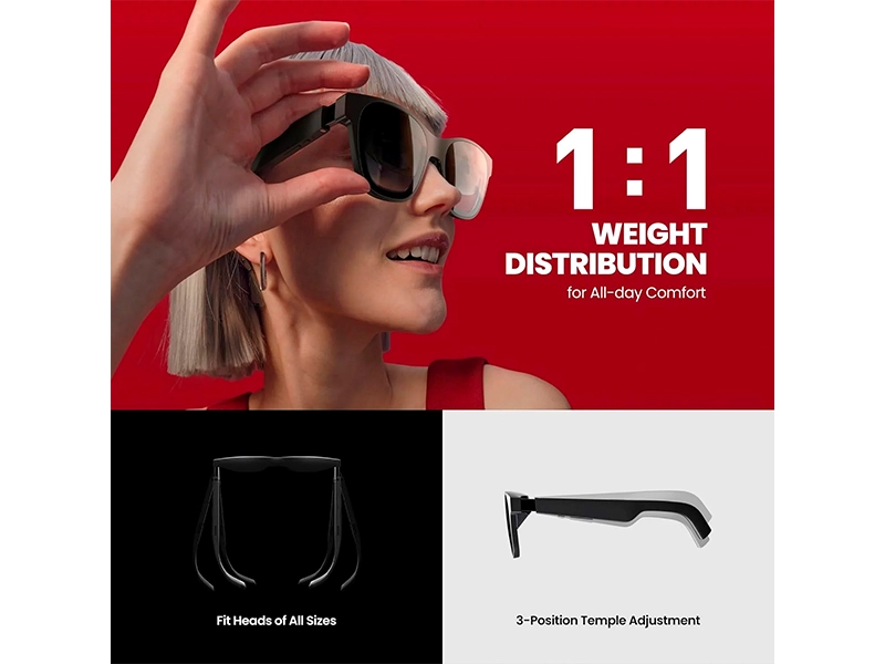 Окуляри віртуальної реальності XREAL Air 2 вирізняються стильним дизайном. Вони стали не тільки привабливішими, але й функціональнішими завдяки оновленим матеріалам, що забезпечують комфортне використання протягом тривалого часу. Ергономічність окулярів також було покращено, що робить їх зручними для щоденного носіння.