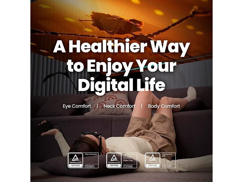Окуляри отримали сертифікацію TÜV Rheinland, що підтверджує їхню безпеку для здоров'я. Технологія зменшеного синього світла та відсутність мерехтіння знижують навантаження на очі, роблячи використання пристрою безпечним навіть під час тривалих сеансів. Це ідеальне рішення для тих, хто хоче зберегти здоров'я очей за активного використання технологій AR.
