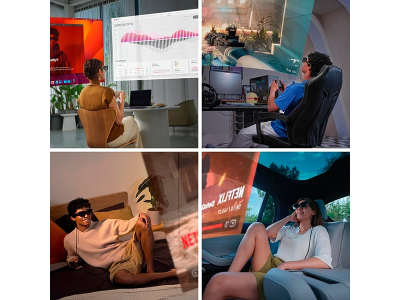 XREAL Air 2 підтримують сумісність із широким спектром пристроїв, включаючи Steam Deck, смартфони, планшети, ПК, консолі. Частота оновлення в 120 Hz забезпечує плавне та приємне відображення контенту, що ідеально підходить для ігор та перегляду відео.