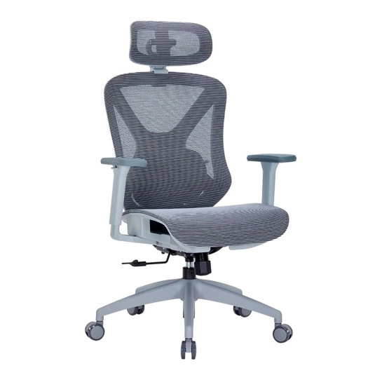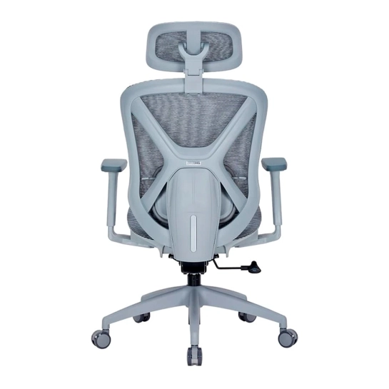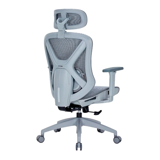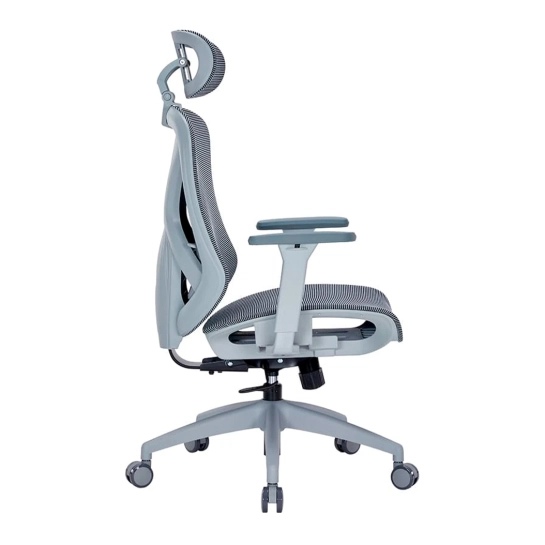 Крісло має систему підтримки попереку з регулюванням по висоті, що сприяє правильному анатомічному положенню тіла під час тривалого сидіння. Регульований підголовник додатково дбає про комфорт шиї та голови.