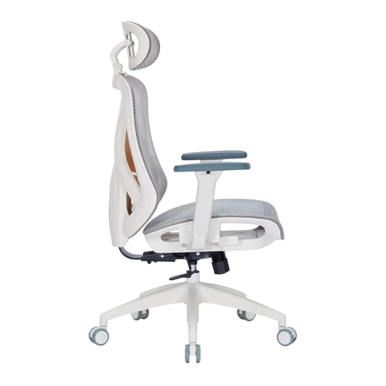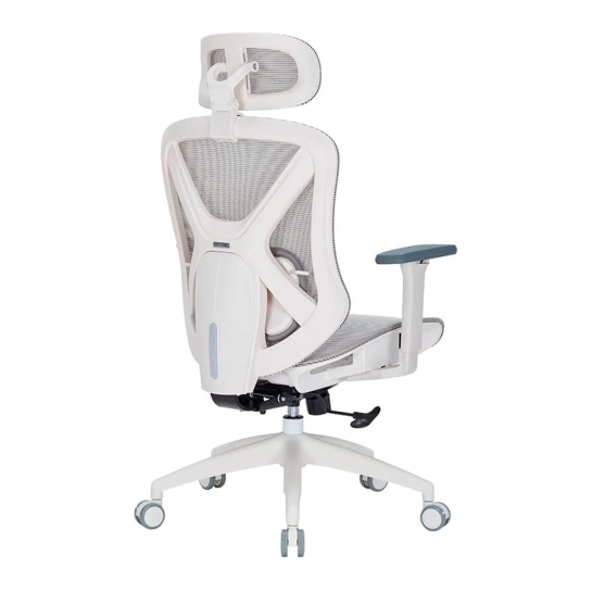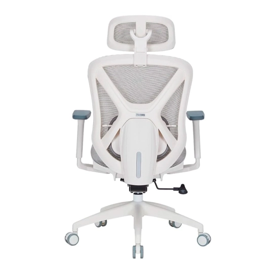 Крісло має систему підтримки попереку з регулюванням по висоті, що сприяє правильному анатомічному положенню тіла під час тривалого сидіння. Регульований підголовник додатково дбає про комфорт шиї та голови.