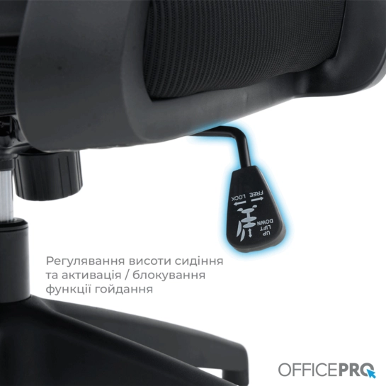 | Регулювання: | Кут нахилу спинки, Кут нахилу сидіння, Кут нахилу підголівника, Висота підголівника, Висота підлокітників, Жорсткість гойдання, Висота сидіння, Механізм хитання, Кут повороту підлокітників |