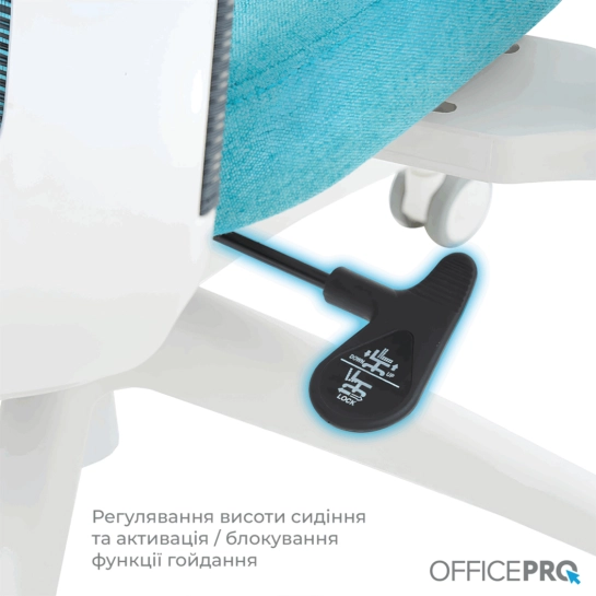 Крісло має повністю регульовані 3D підлокітники, які налаштовуються по висоті, горизонталі та вперед-назад. Синхромеханізм дозволяє фіксувати спинку в 3 положеннях нахилу, а функція гойдання з регулюванням жорсткості забезпечує оптимальне розслаблення.