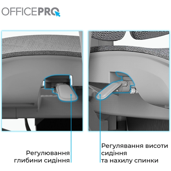 | Регулювання: | Кут нахилу спинки, Глибина сидіння, Кут нахилу сидіння, Кут нахилу підголівника, Висота підголівника, Висота підлокітників, Жорсткість гойдання, Висота сидіння, Висота спинки, Механізм хитання, Кут повороту підлокітників |
