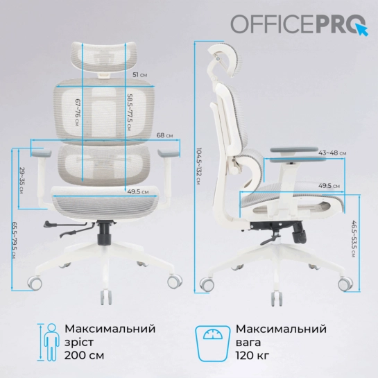 Характеристики для Офісне крісло OfficePro Skyline OC680-W-LG-LG