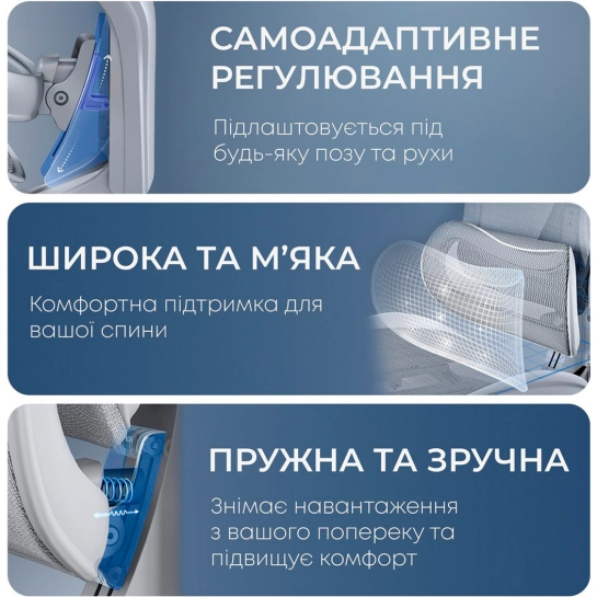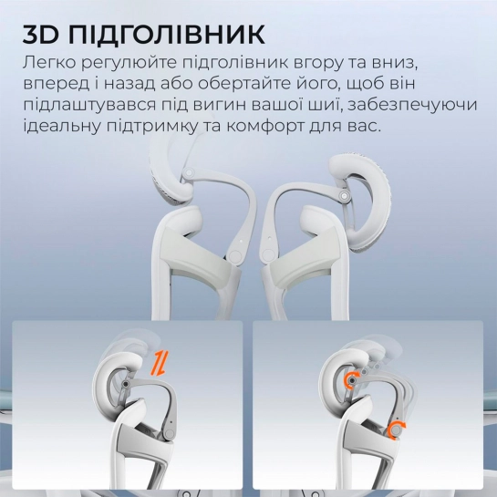 | Регулювання: | Кут нахилу спинки, Глибина сидіння, Кут нахилу сидіння, Підтримка ніг, Кут нахилу підголівника, Висота підголівника, Висота підлокітників, Висота сидіння, Відстань підлокітників, Висота спинки, Кут нахилу підлокітників, Кут повороту підлокітників |