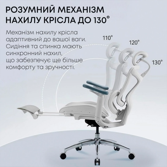 Опис Офісне крісло Sihoo DORO C300L Mesh White with footrest
