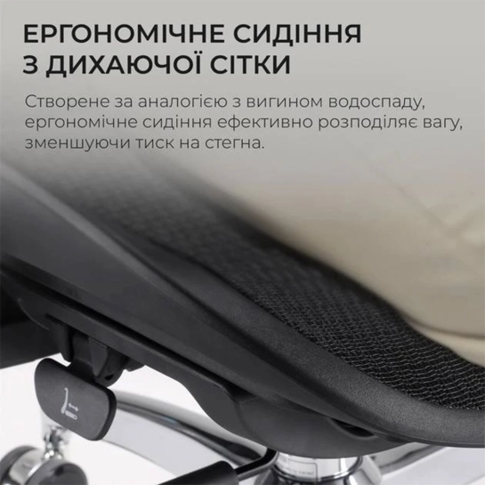 Сидіння з регульованою глибиною до 5 см рівномірно розподіляє тиск, покращуючи кровообіг у ногах. Механізм нахилу спинки дозволяє нахилитися до 135 ° для відпочинку або зміни робочої пози. Конструкція виготовлена з якісних матеріалів - міцної металевої рами і "сітки, що дихає".