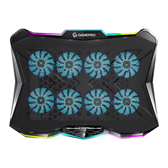 Охолоджувальна підставка для ноутбука GamePro CP680 – це потужна система охолодження, що має вісім потужних вентиляторів діаметром 70мм, що обертаються із частотою до 2500 обертів на хвилину. Це означає, що вони здатні забезпечити ефективне охолодження ноутбука, уникаючи перегріву та зберігаючи його продуктивність на високому рівні.