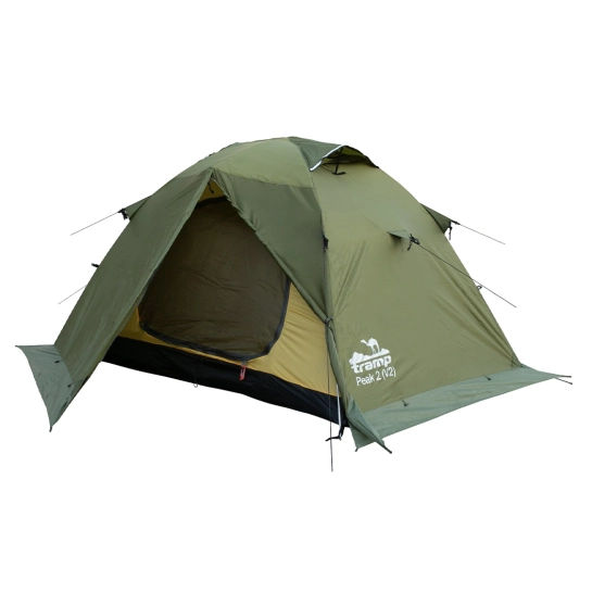 Двомісний експедиційний намет Tramp Peak 2 з двома входами, двома тамбурами збільшеного об'єму і площі. Додаткова консльная дуга збільшує площу і внутрішній об'єм тамбура, підвищує вітростійкість і ветрообтекаемость намету. Забезпечений сніговою спідницею. Намет призначений для пішого та гірського туризму, альпінізму та зимових походів під час будь-якого сезону.