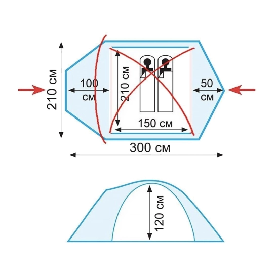 | Розмір: | 210 х 300 х 120 см |