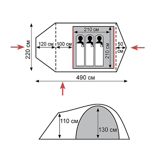 - Двошаровий намет з трьома входами;