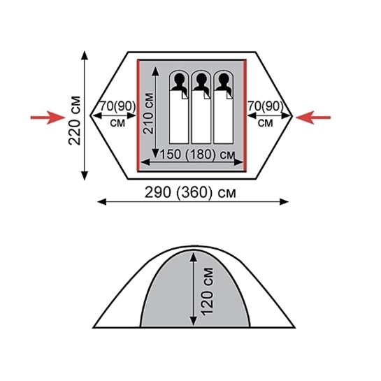- Зовнішній тент намету стійкий до ультрафіолетового випромінювання;