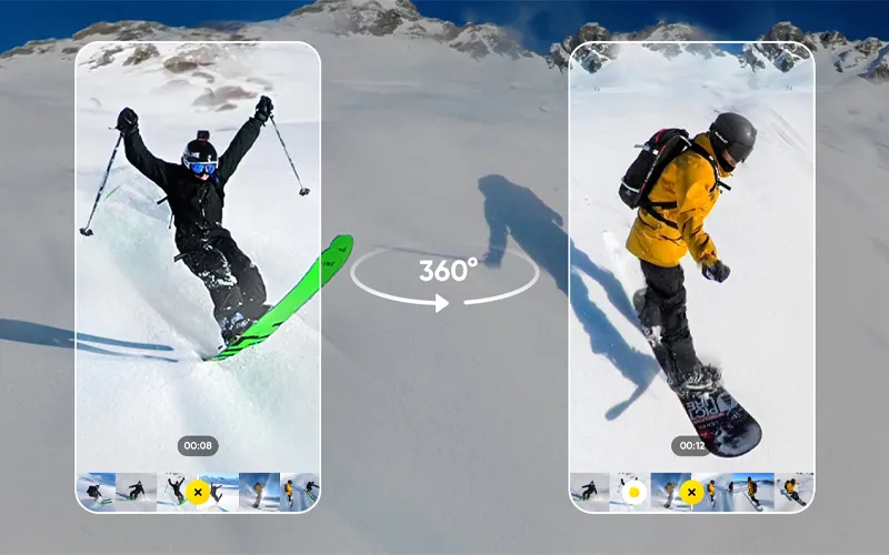 Спершу знімайте, потім наводьте. Зафіксуйте дію з усіх боків, а потім виберіть, на чому сфокусуватися, за допомогою 360-градусного рефреймінгу. Використовуйте його з невидимою палицею для селфі для неможливих знімків від третьої особи.