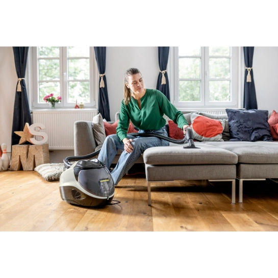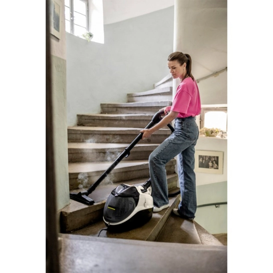 Пропонований Kärcher паропилосос SV 7 поєднує переваги пароочисника та пилососа сухого прибирання. З його допомогою можна, наприклад, одночасно видаляти сміття, що розсипалося, здійснювати вологе прибирання підлоги і відразу ж висушувати його. Такий універсальний апарат з відповідним приладдям гарантує наведення бездоганної чистоти в усьому будинку – легко, зручно, з економією часу та без використання засобів для чищення.