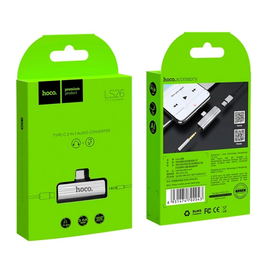 Опис Перехідник Hoco Adapter Type-C to 3.5mm 2-in-1 (27904)