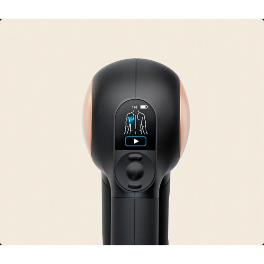 Пристрій оснащений оновленим LCD-екраном, який точно показує де масажувати, як довго і з яким тиском. Вибирайте одну з 4 завантажених програм, розроблених експертами, або створіть власну, зберігайте до 5 улюблених процедур з програми Therabody.