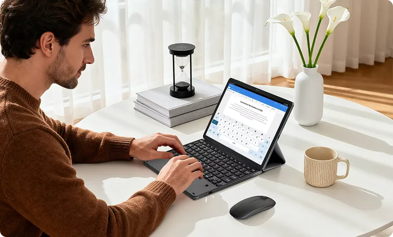 Підключіть бездротову клавіатуру та мишу, щоб розблокувати режим PC Mode 2.0 і перетворити ZENO 10 на справжній робочий простір у стилі настільного комп'ютера. Плавне набирання тексту та точне керування курсором спрощують багатозадачність, підвищуючи продуктивність як у роботі, так і в навчанні. ZENO 10 постачається з безкоштовною бездротовою клавіатурою.