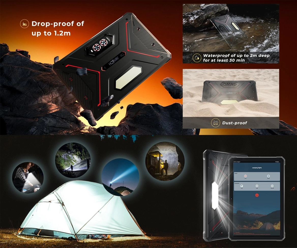 Hotwav R9 Pro створений для тих, хто цінує надійність, комфорт та функціональність. Його корпус відповідає військовим стандартам захисту MIL-STD-810H і стійкий до падінь, пилу та води. Пристрій не боїться складних умов експлуатації - від будівельного майданчика до далеких мандрівок. Незважаючи на міцну конструкцію, товщина планшета складає всього 1,78 см , що робить його зручним у використанні. Невелика вага дозволяє комфортно тримати пристрій однією рукою, а вбудований потужний ліхтарик стане незамінним помічником у темряві чи під час кемпінгу. Це ідеальне поєднання витривалості, ергономіки та мобільності.