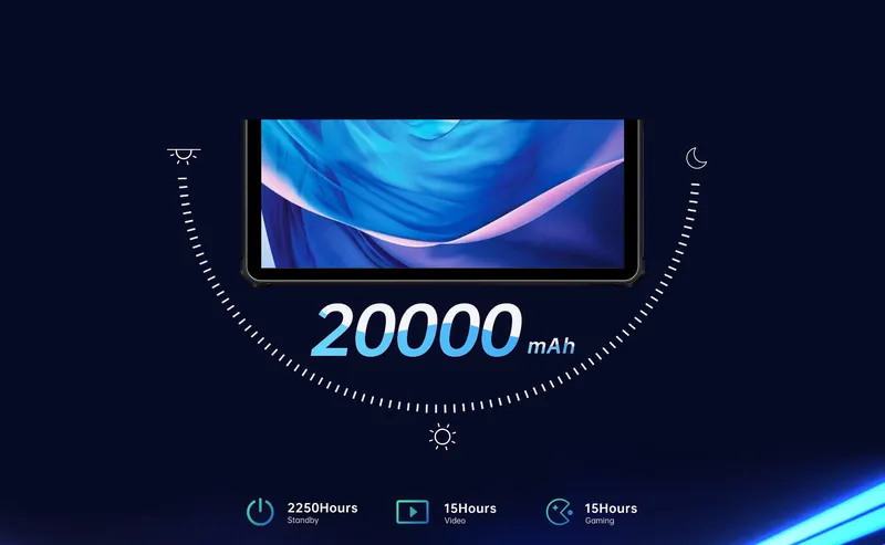 Планшет Oukitel RT6 підтримує швидку зарядку потужністю 33 Вт. Акумулятор з тривалим терміном служби забезпечує роботу та розваги протягом декількох годин після однієї зарядки.
