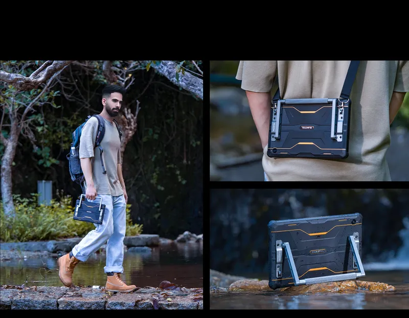 Носіть потужний міцний планшет однією рукою або на ремені - так ви зможете безперешкодно користуватися інтерфейсом планшета, навіть перебуваючи на робочій поверхні. Він також працює як підставка для планшета, щоб підняти його для кращого та зручнішого перегляду.