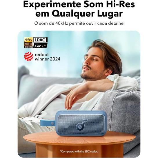 Насолоджуйтесь точністю звуку, як ніколи раніше завдяки сертифікації Hi-Res Audio Wireless Motion 300. Використовуючи вдосконалений Bluetooth-кодек LDAC, ця колонка передає втричі більше даних, ніж стандартні кодеки, пропонуючи максимальний бітрейт 990 кбіт/с. Це означає, що ви зможете насолоджуватися якістю звуку, яке є помітно багатшим та детальнішим.