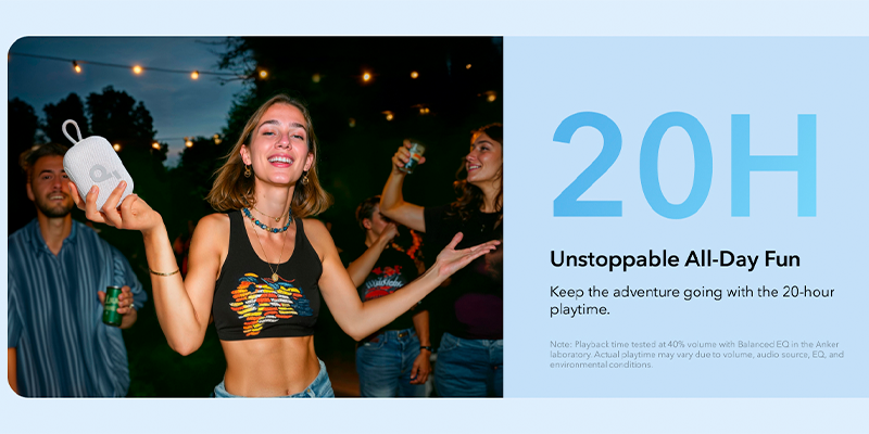 Насолоджуйтесь до 20 години безперервної музики на одному заряді – ідеально підходить для пригод на природі та цілорічного прослуховування.