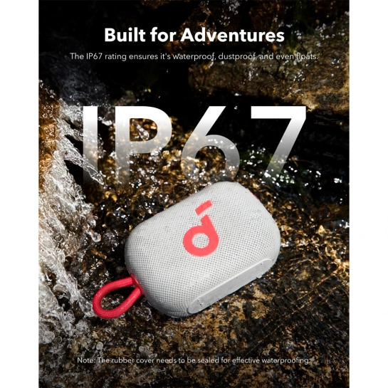 Завдяки рейтингу IP67 цей портативний динамік має повний захист від пилу та води, витримує суворі умови на відкритому повітрі і навіть може плавати, що робить її ідеальною для подорожей на пляж.