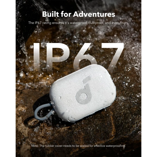 Завдяки рейтингу IP67 цей портативний динамік має повний захист від пилу та води, витримує суворі умови на відкритому повітрі і навіть може плавати, що робить її ідеальною для подорожей на пляж.