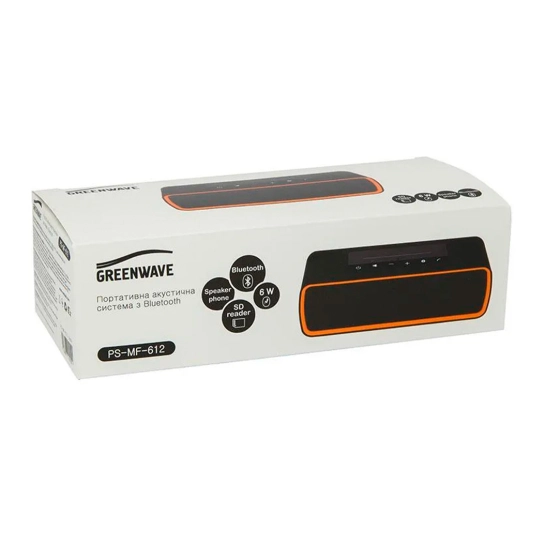 Акустична система Greenwave PS-MF-612 – це стильна портативна акустична система з бездротовим Bluetooth-підключенням та вбудованим кардрідером SD/MMC. Новинка працює з усіма Bluetooth пристроями (смартфони, планшети, mp3-плеєр та більшість ноутбуків) та забезпечує реалістичне відтворення потужного звуку.