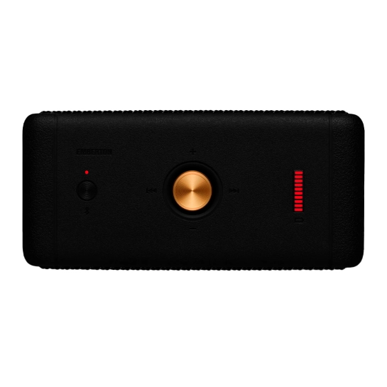 Emberton III black&brass простий та легкий у використанні. Керуйте ним за допомогою багатонаправленої ручки керування. Ви можете відтворювати, ставити паузу, пропускати треки та регулювати гучність динаміка.