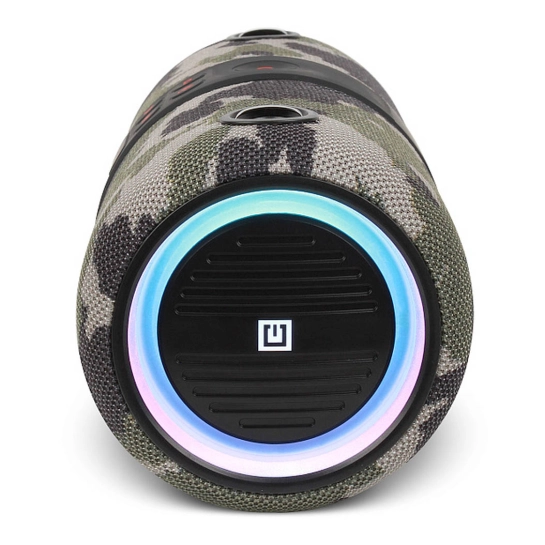 Камуфляжне оформлення надає акустичній системі характеру і стилю, підкреслюючи індивідуальність власника. RGB-підсвічування синхронізується з ритмом музики, створюючи динамічну атмосферу та ефект присутності на концерті. Колонка стане яскравим акцентом будь-якого заходу чи інтер'єрного простору.