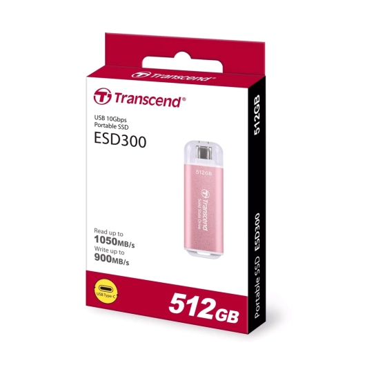 Портативний SSD Transcend 512GB USB 3.1 Gen 2 Type-C ESD300 Pink (TS512GESD300P)