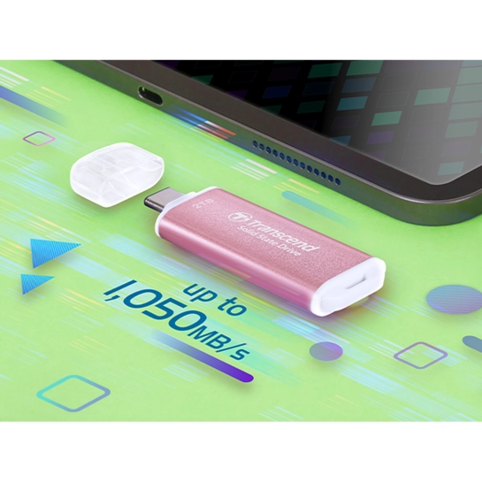 Опис Портативний SSD Transcend 512GB USB 3.1 Gen 2 Type-C ESD300 Pink (TS512GESD300P)