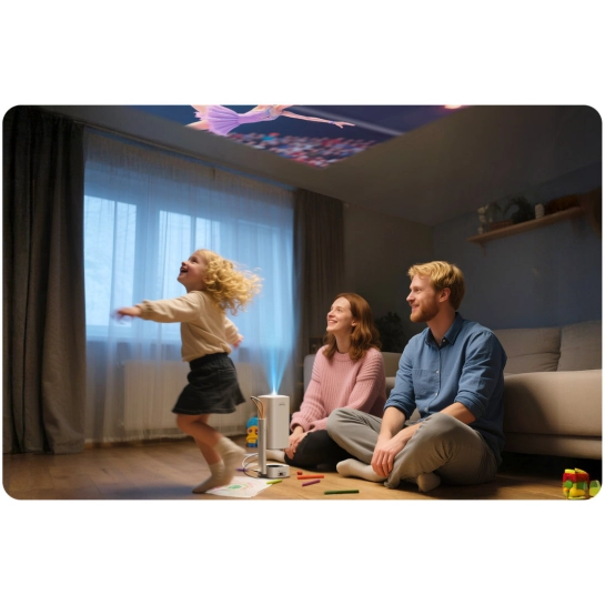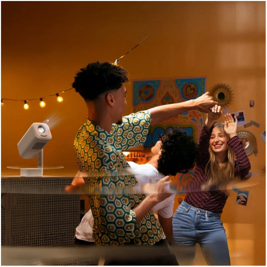 180° всенаправлений карданний підвіс підтримує режими проєкції на стелю та бічну проєкцію. Легко регулюйте кути однією рукою — проєктуйте на стелю спальні для вечорів кіноперегляду в ліжку або на стінки намету під час кемпінгу, отримуючи незабутні враження в будь-якій ситуації.