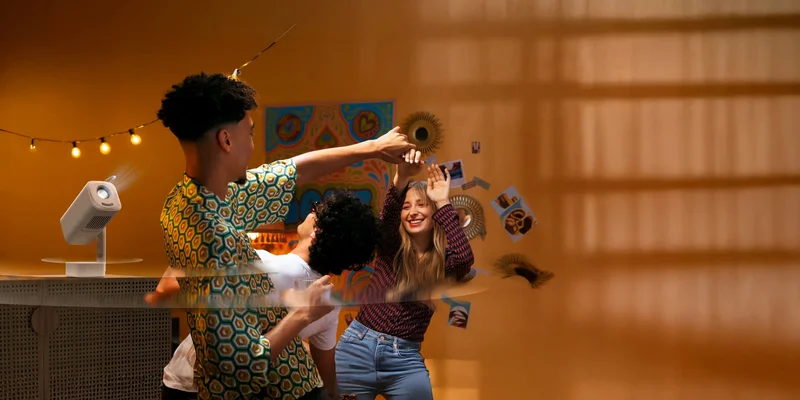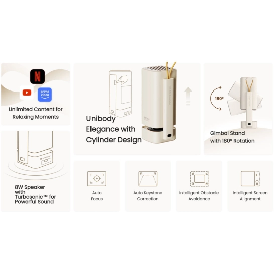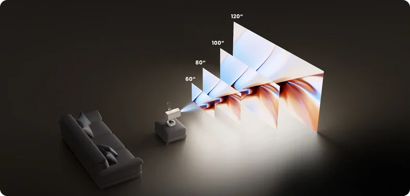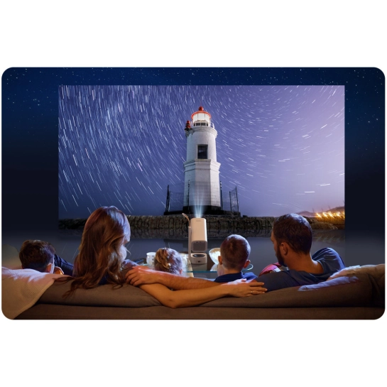 Вага T1 Pro становить лише 1,2 кг, а розгортається він за 3 секунди одним натисканням кнопки, що виключає складну настройку традиційних проєкторів. Прихована механічна конструкція забезпечує справжню простоту використання: достатньо лише дістати з коробки й почати проєктувати.