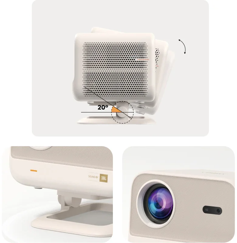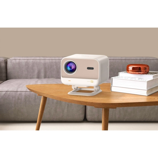 Інтегрована конструкція підставки постачається в попередньо встановленому вигляді, що робить її зручною і готовою до використання відразу після коробка. Просто викрутивши гвинти, можна від'єднати підставку від пристрою, що дозволяє без зусиль вибрати між розміщенням на столі або кріпленням до стелі відповідно до різних потреб у проєкції. Незалежно від того, чи це для домашнього кінотеатру, чи для ділової презентації, гнучка конструкція забезпечує більш комфортне та універсальне використання.