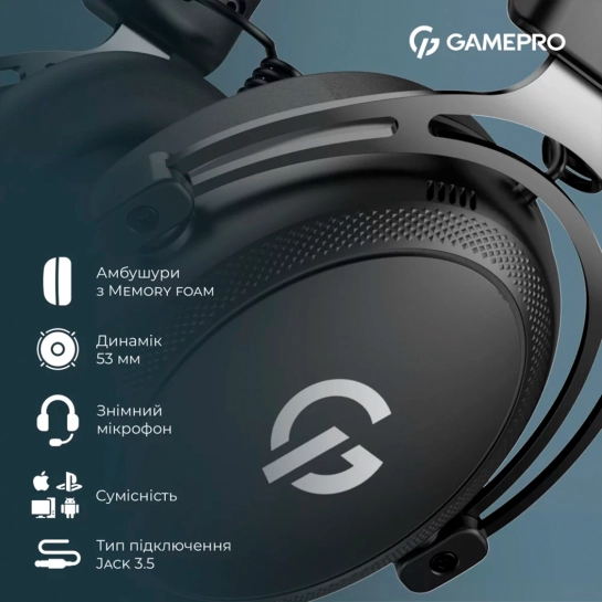 Ігрова гарнітура GamePro Asgard Skald Origin – професійне рішення для геймерів та стримерів, що поєднує якісний звук, комфорт та стильний дизайн. 53 мм динаміки забезпечують потужне та деталізоване звучання в діапазоні 20 Hz – 20 kHz з насиченими басами та чистими високими. Чутливість 114 dB та імпеданс 32Ω гарантують стабільний та глибокий звук будь-якої гри. Знімний всеспрямований мікрофон із чутливістю –47±3 dB передає голос чітко та природно – ідеально для командної гри чи стриму. Пружний кабель 2 м з роз'ємом 3,5 мм забезпечує широку сумісність із ПК, ноутбуками, консолями та смартфонами.