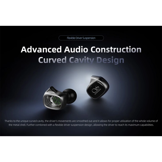 - 10-міліметровий динамічний драйвер з DLC-покриттям: Композитна мембрана DLC (Diamond-Like Carbon) забезпечує високу жорсткість, чутливість та відмінну перехідну характеристику, забезпечуючи потужні баси та детальне звучання.