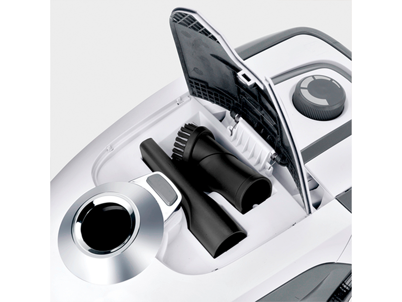 Компактний та надійний мішковий пилосос VC 2 Premium спеціально призначений для швидкого та ефективного сухого прибирання як твердої підлоги, так і килимових покриттів. Революційно енергозбіжна модель, яка споживає всього 750 Вт, при цьому не втрачаючи сили всмоктування. Бюджетний пилосос у лінійці пилососів Керхер оснащений НЕРА-фільтром 13, що забезпечує високоефективне утримання пилу та гарантує чисте прибирання. НЕРА-фільтр дозволяє практично повністю позбавиться надлишкового пилу, який піднімається в процесі збирання. Бюджетний пилосос Karcher VC 2 Premium за своїми параметрами не сильно поступається своїм дорожчим аналогам. Аксесуари можуть зручно розташовуватись на корпусі апарата.